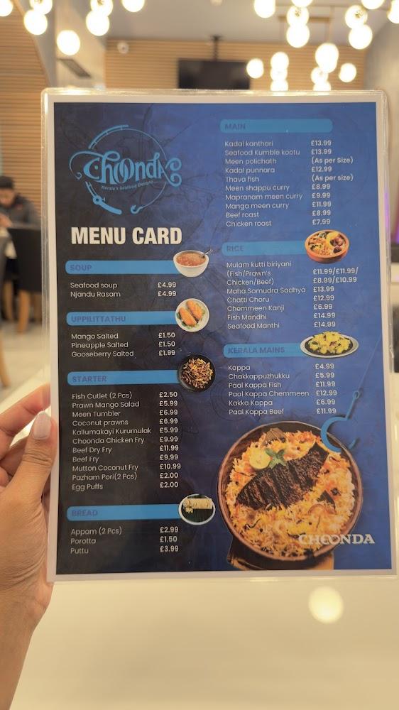 Nestled at 443-445 Barking Rd, Choonda stands as London’s premier destination for authentic Kerala cuisine. Located in the vibrant community of East Ham, this restaurant attracts seafood lovers and culinary adventurers alike. The space is infused with a homely vibe, captivating diners with its warm decor and the aroma of spices wafting from the kitchen. The friendly staff makes every visit special, providing attentive service that makes dining feel personal. With options for dine-in, delivery, and takeaway, Choonda accommodates every schedule, whether it's a relaxing dinner or a quick seafood fix. Parking is hassle-free with both free and paid street parking available nearby, making it accessible for everyone. Additionally, the restaurant maintains a steady flow of loyal patrons who appreciate the high standards consistently delivered in every plate.